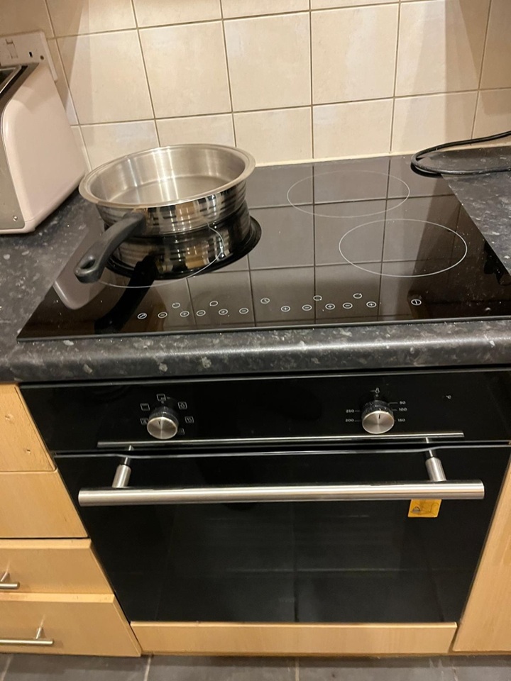 Modern kitchen with new oven & hob, plumbing for a washing machine and space for a large fridge freezer