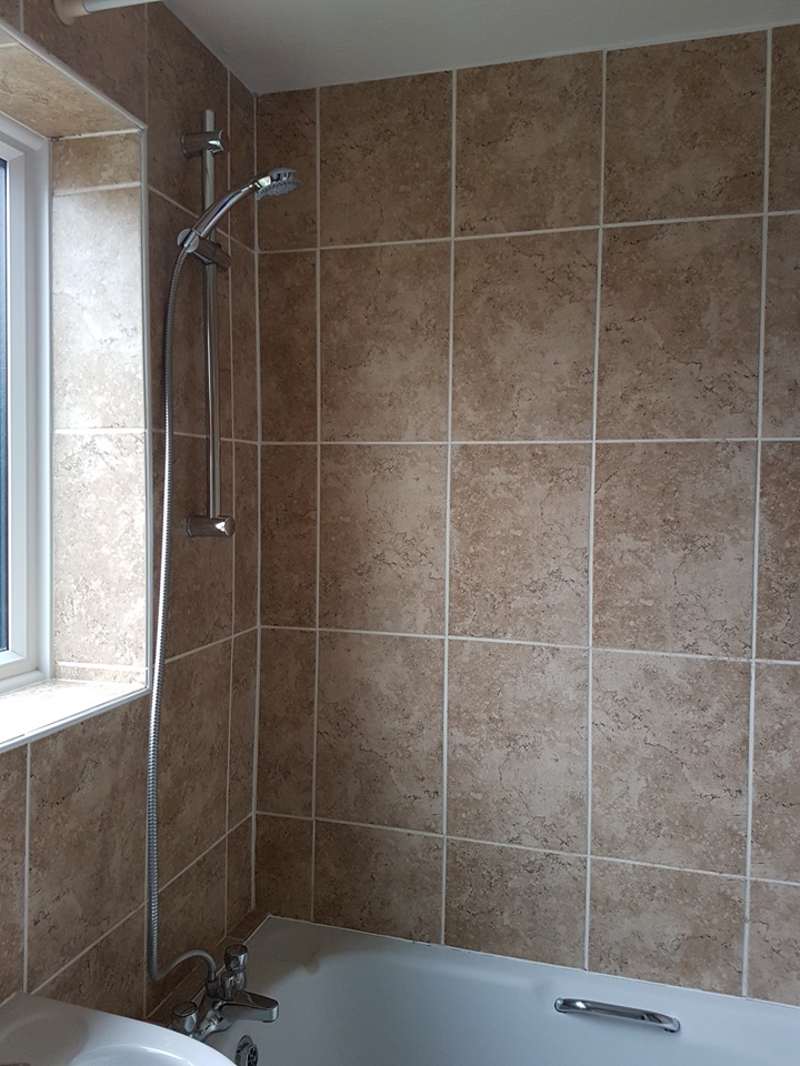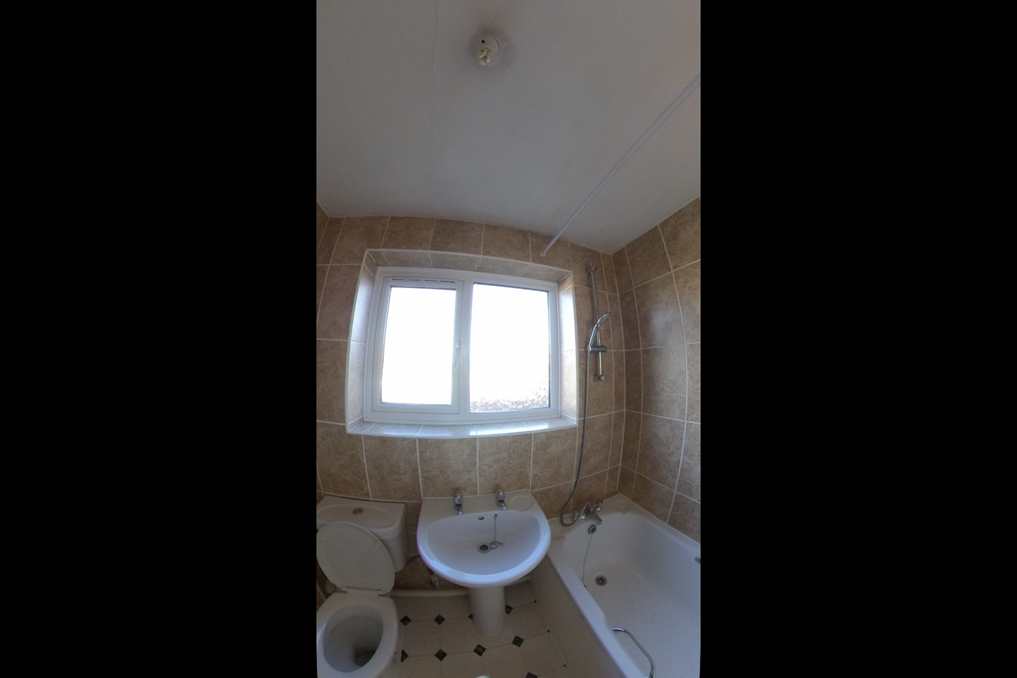 Modern bathroom with white suite and shower attachment