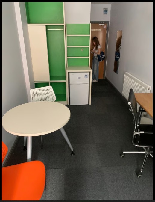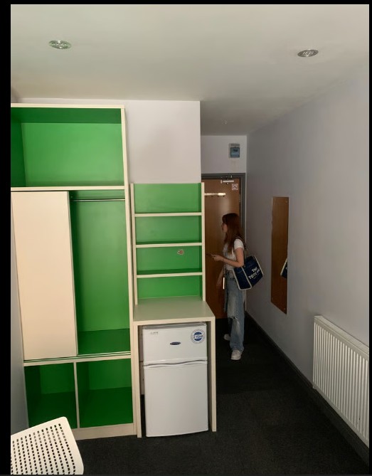Fully furnished with a double bed, wardrobe, desk, and your own fridge
