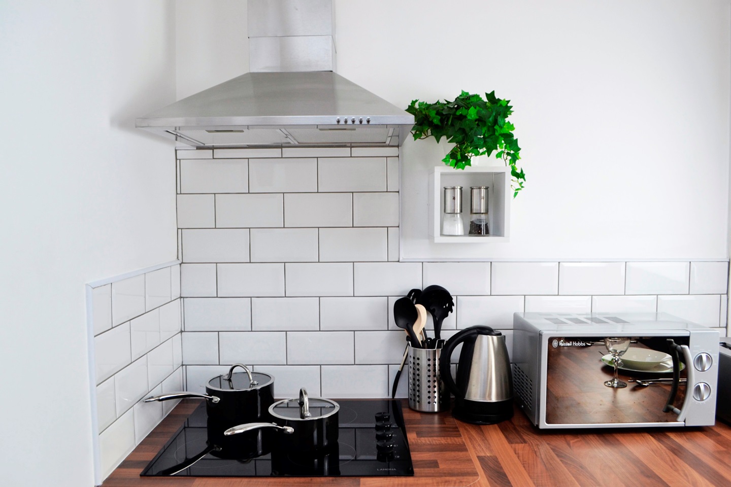 Along with the usual amenities, the kitchen is also equipped with a Dulce Gusto coffee machine, microwave, crockery and cutlery, as well as pots and pans.