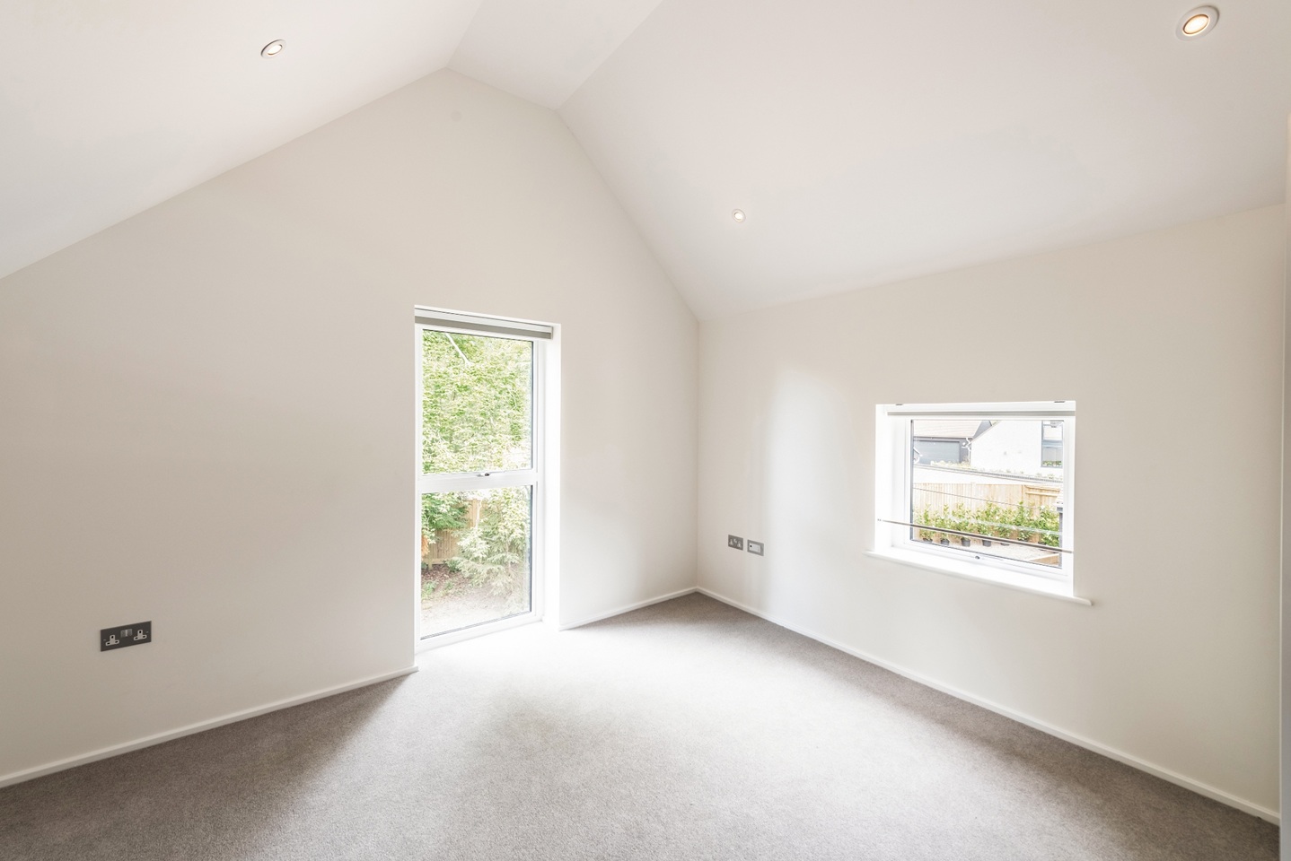 On arrival, parking for multiple cars is available in a substantial private front courtyard with EV charging point. Adjacent to this is an insulated double garage with electric door. This space has been used by the owners as a good-sized home gym.