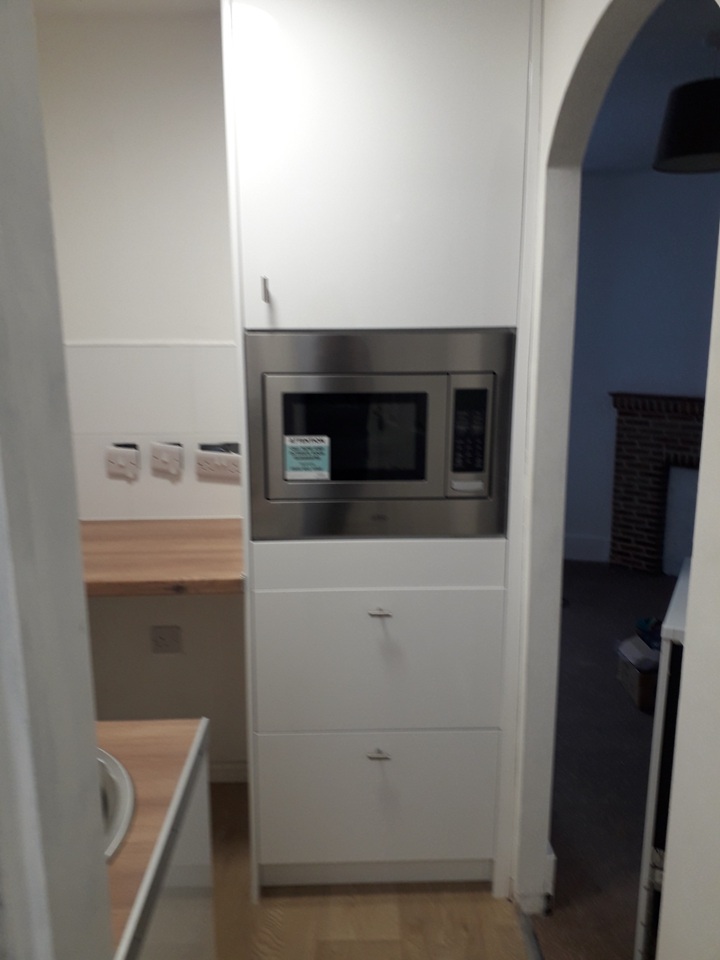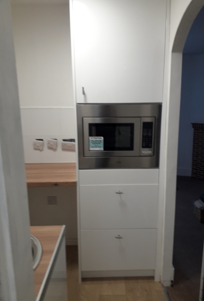 Refitted kitchen with 2-ring hob, built-in microwave/convection oven, grill and undercounter fridge