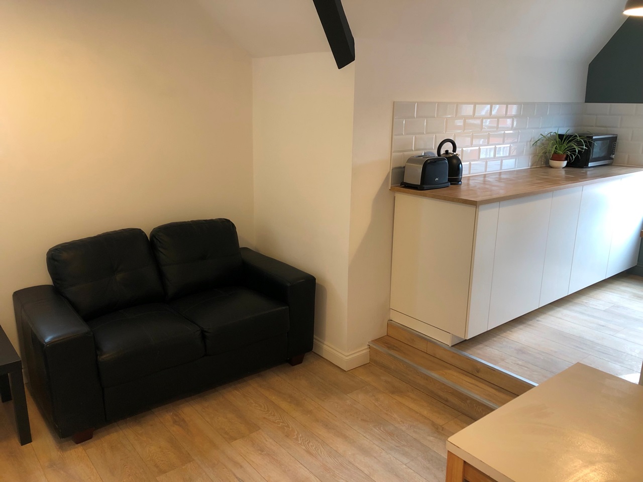 The flat has a spacious kitchen/lounge area, including beautiful, solid hardwood floors and a separate, fully carpeted, bedroom. Comes fully furnished including a leather sofa and an ottoman bed to allow for extra storage and orthopaedic memory foam mattress.