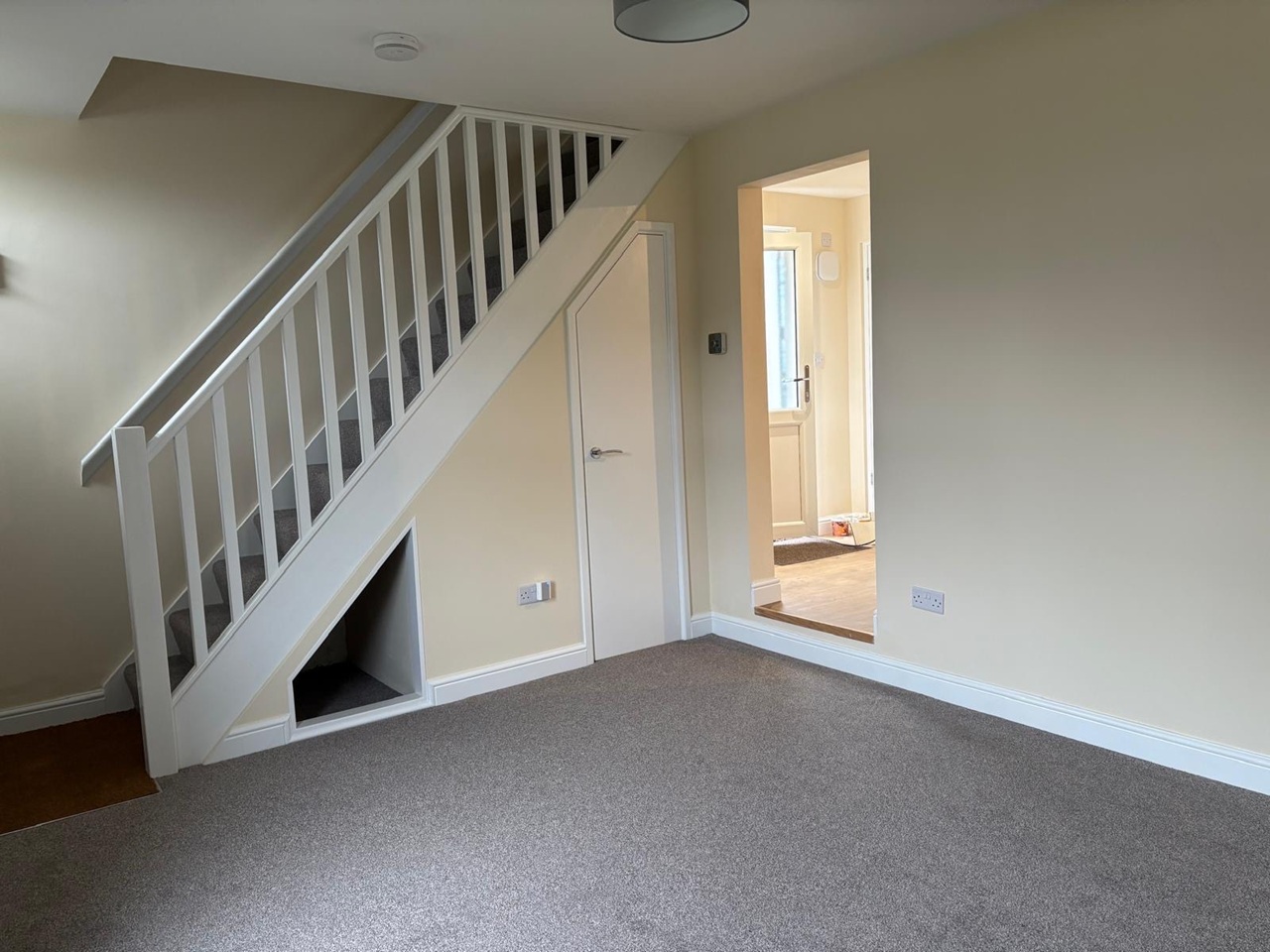 Double glazed composite front door leading to a large bright lounge with high ceilings, sealed fireplace, ample electrical sockets, satellite, ethernet and Hive thermostat.