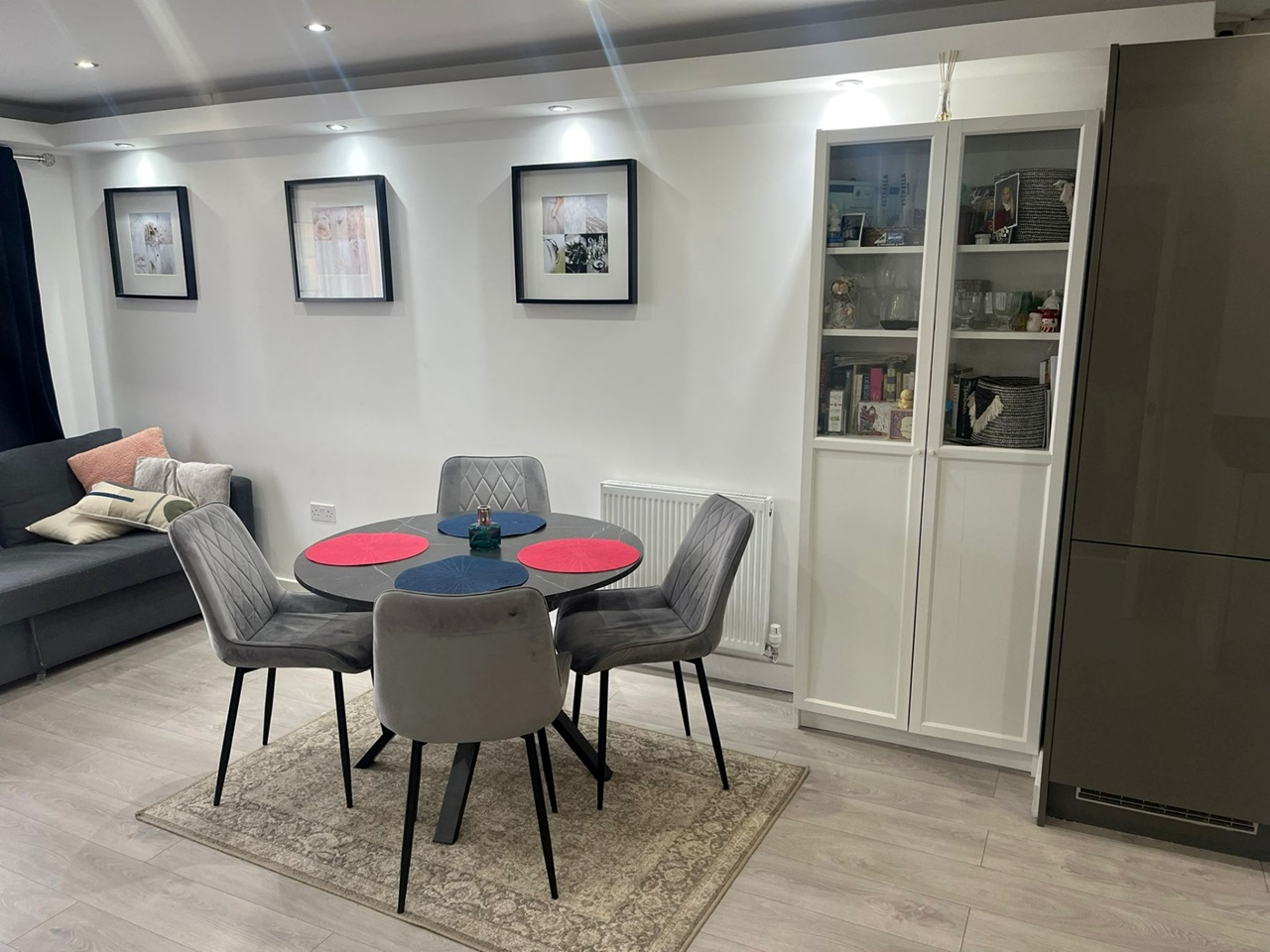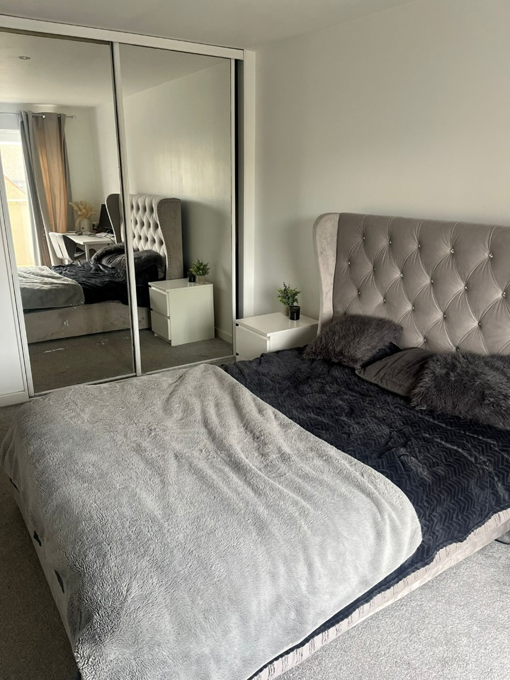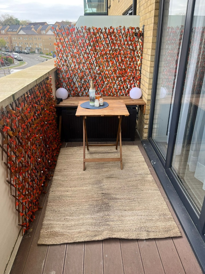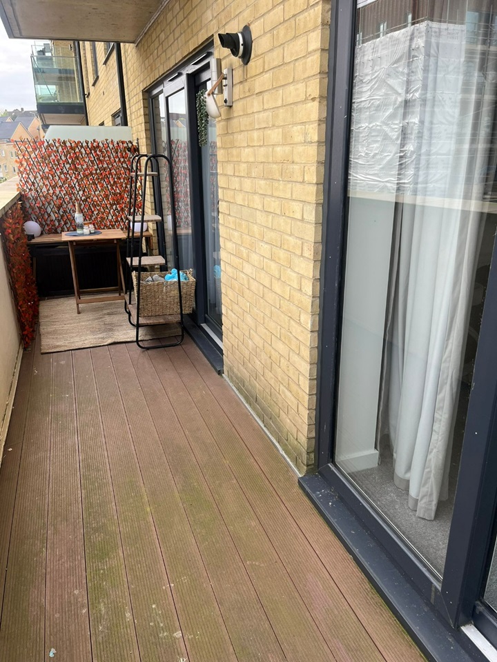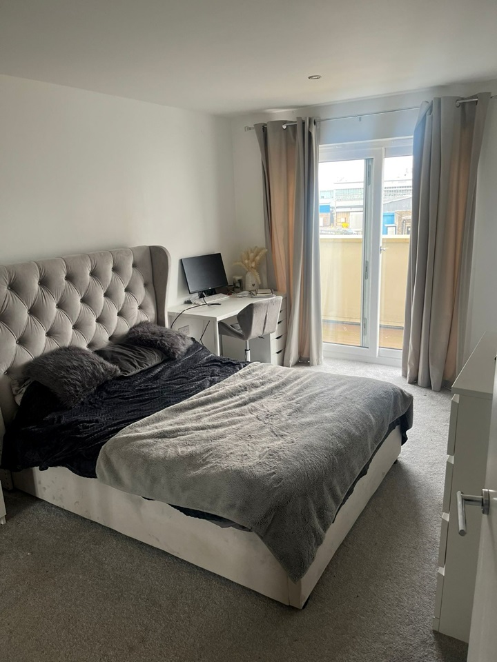 Property is fully furnished - Bathroom features storage and fitted wardrobe space in the bedroom , double bed, and shelf units including desk and office chair . ( Good space to use if you are working from home !) Open plan kitchen with integrated appliances, fridge/freezer , oven, washing machine , dish washer. Lounge comes with a dining table, bookshelf cabinet, storage unit and a sofa bed ( good , comfortable bed to convert into use as a sofa bed if you are having visitors ) .The property has small storage space in the corridor. There is an impressive and very large balcony ( with built in bench )