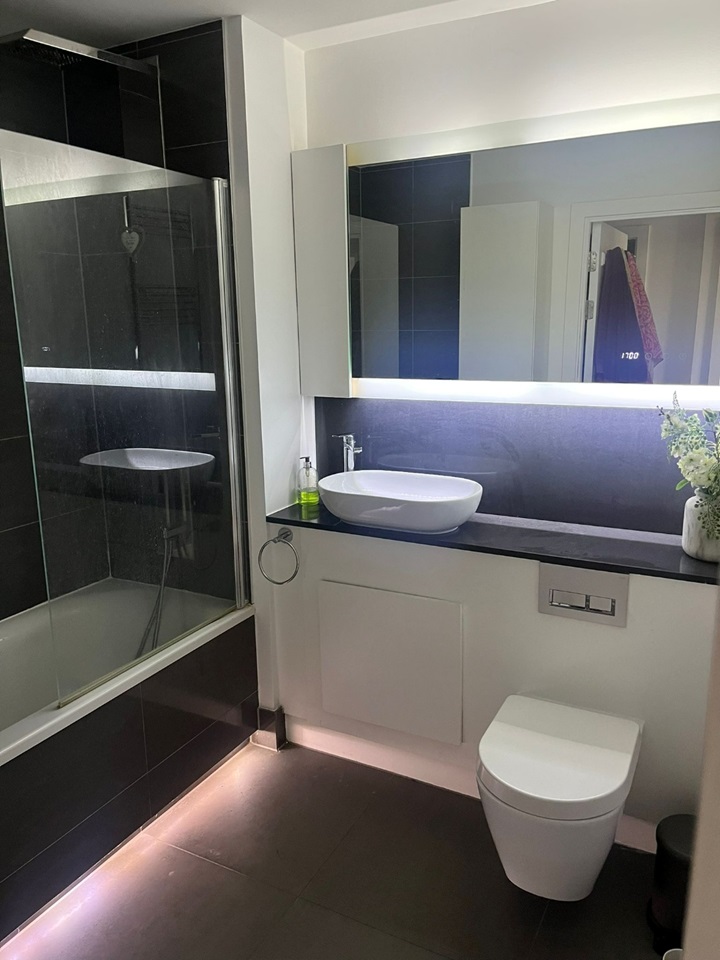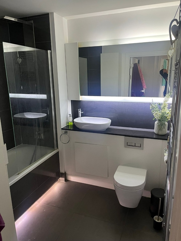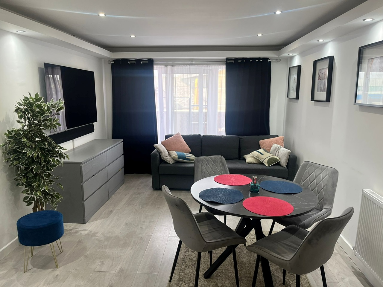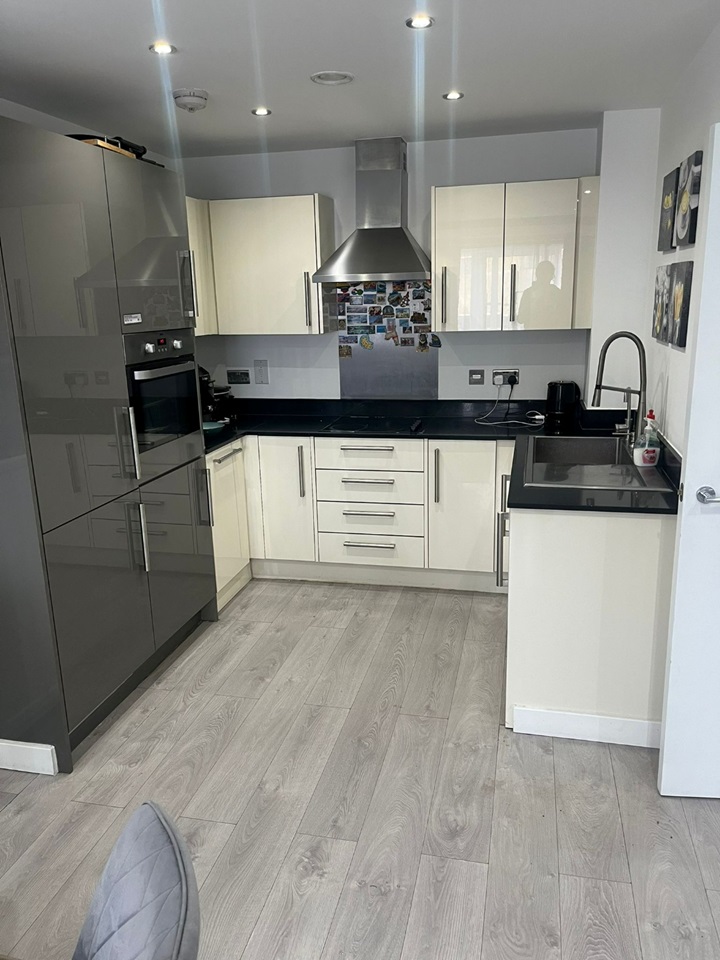 Property is fully furnished - Bathroom features storage and fitted wardrobe space in the bedroom , double bed, and shelf units including desk and office chair . ( Good space to use if you are working from home !) Open plan kitchen with integrated appliances, fridge/freezer , oven, washing machine , dish washer. Lounge comes with a dining table, bookshelf cabinet, storage unit and a sofa bed ( good , comfortable bed to convert into use as a sofa bed if you are having visitors ) .The property has small storage space in the corridor. There is an impressive and very large balcony ( with built in bench )