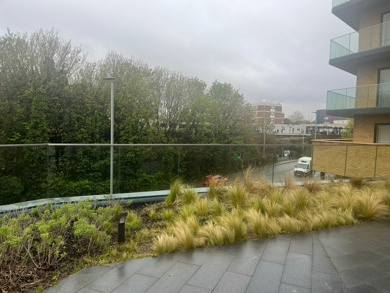 Available from July , this modern home offers 1 double bedroom , separate family bathroom, open plan kitchen with integrated appliances, great living space, and large balcony off of the living room and bedroom.