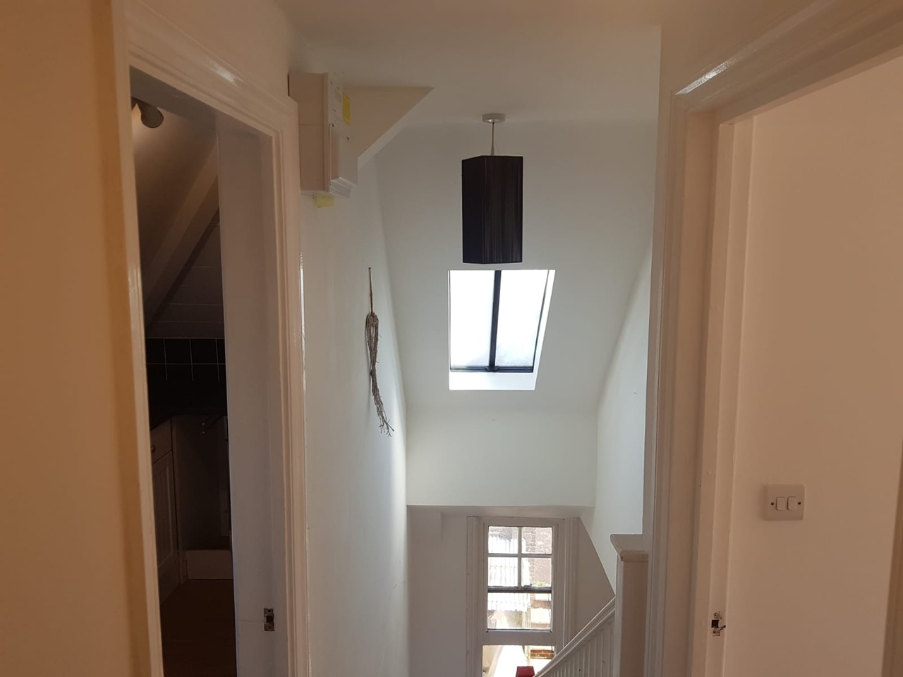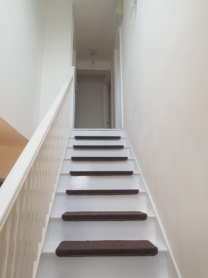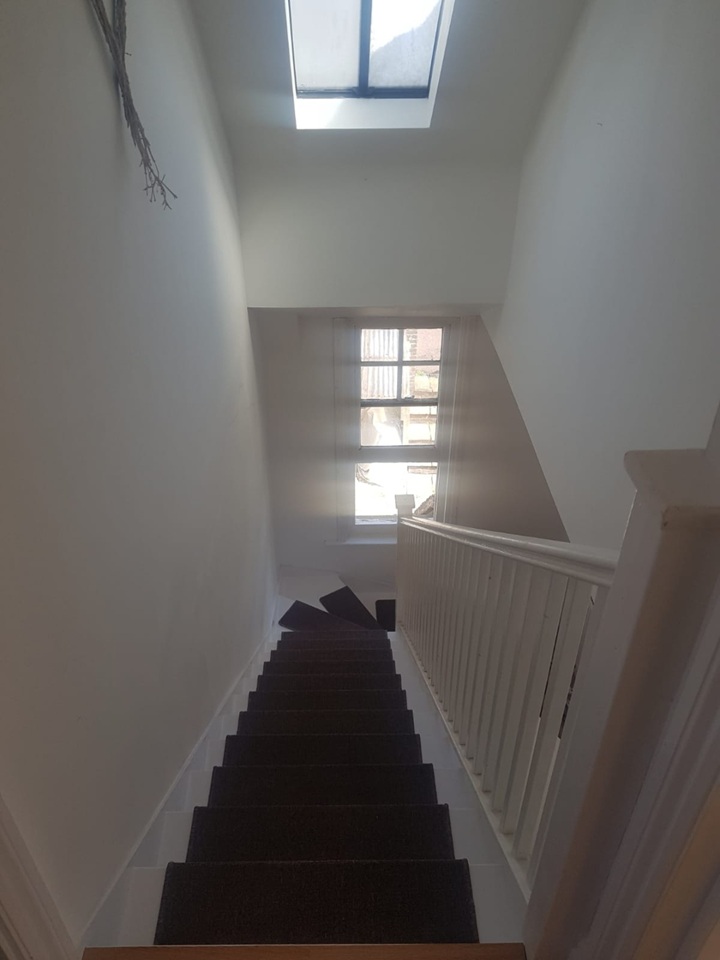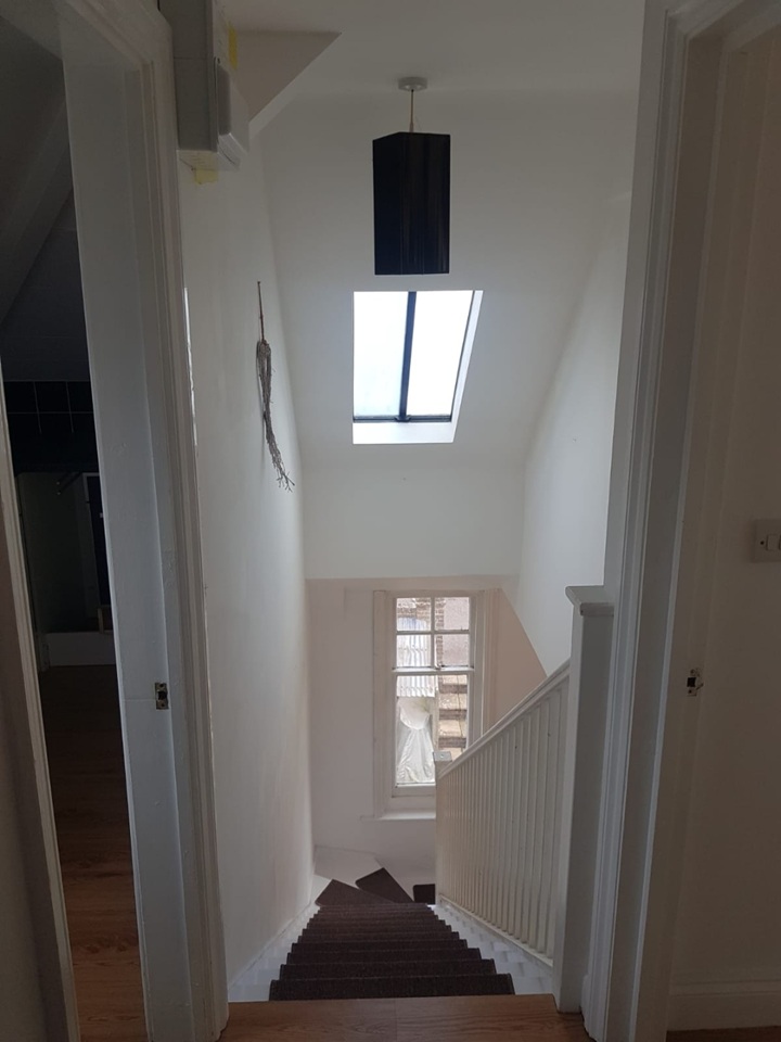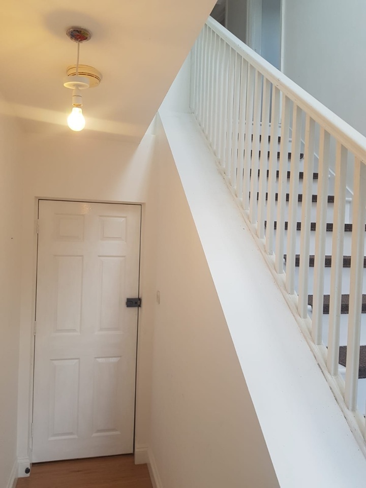 Private front door leading to newly decorated spacious private hallway with stairs to :-