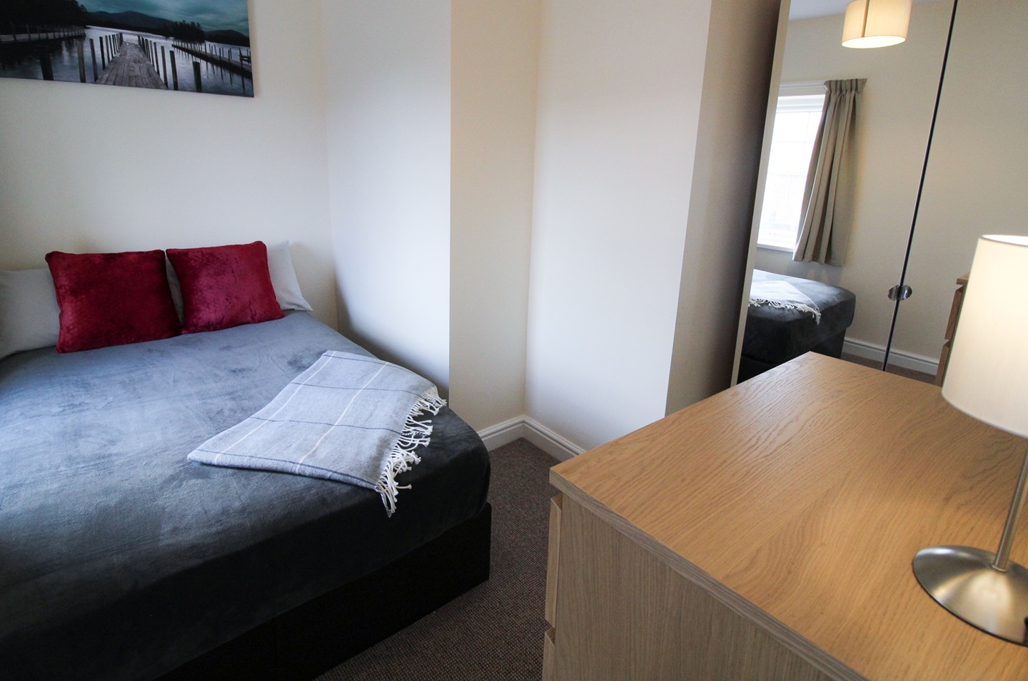 Fully furnished which includes: beds, wardrobes, chests of drawers, curtains, carpets, sofas, large tv in main lounge, hoover, iron & ironing board, fridge freezer, washing machine, even down to your pans, crockery, cutlery and glassware! all you need to bring is your bedding!