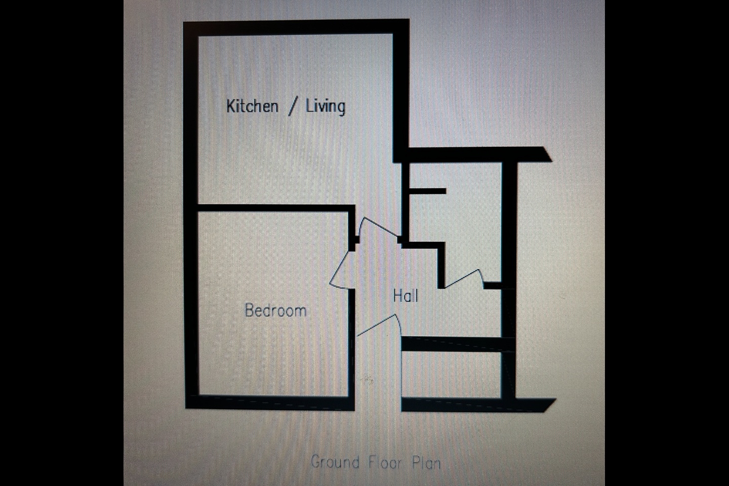 Kitchen / Living room with full compliment of high and low level units, gas hob, electric oven and extractor, washer dryer and fridge freezer.