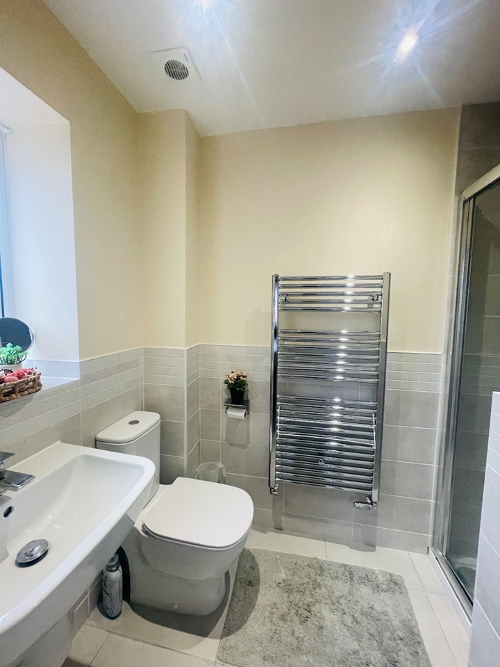 This is the Largest ensuite room in the house – furnished with a Super King bed, dedicated Office space and and wardrobe. It's perfect for someone who appreciates a calm, tidy and Class community.