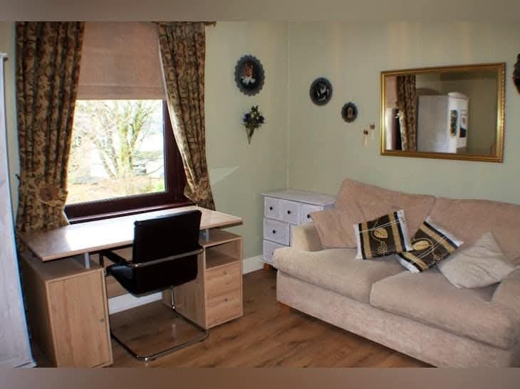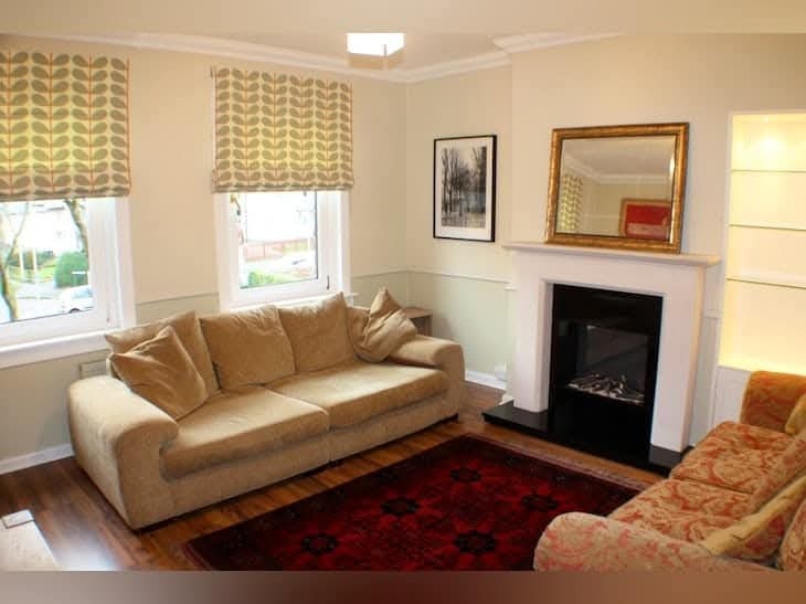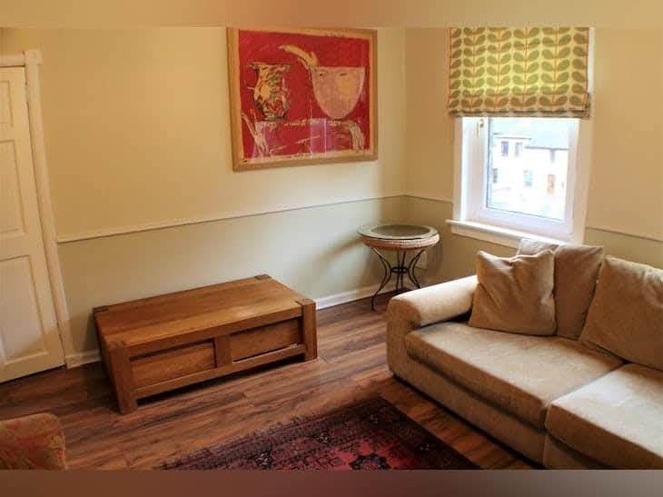 First floor flat (4 in a block) 2 double bedrooms (one mine) private garden, gas central heating, double glazing, quiet leafy surroundings, very close proximity to main route to Edinburgh for easy commute (see google map pics)