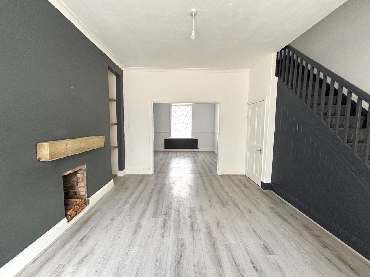 Downstairs this property boasts an entry hallway leading to a large lounge and through dining room, both with feature fireplaces. The dining room leads to the kitchen at the back of the property and the back yard. The stairs are a feature in the dining room and lead up to two bedrooms and a bathroom with shower over the bath.