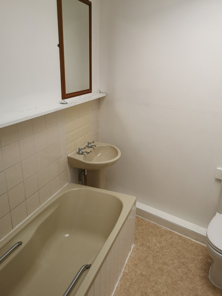 - Family bathroom with bath and shower over.
