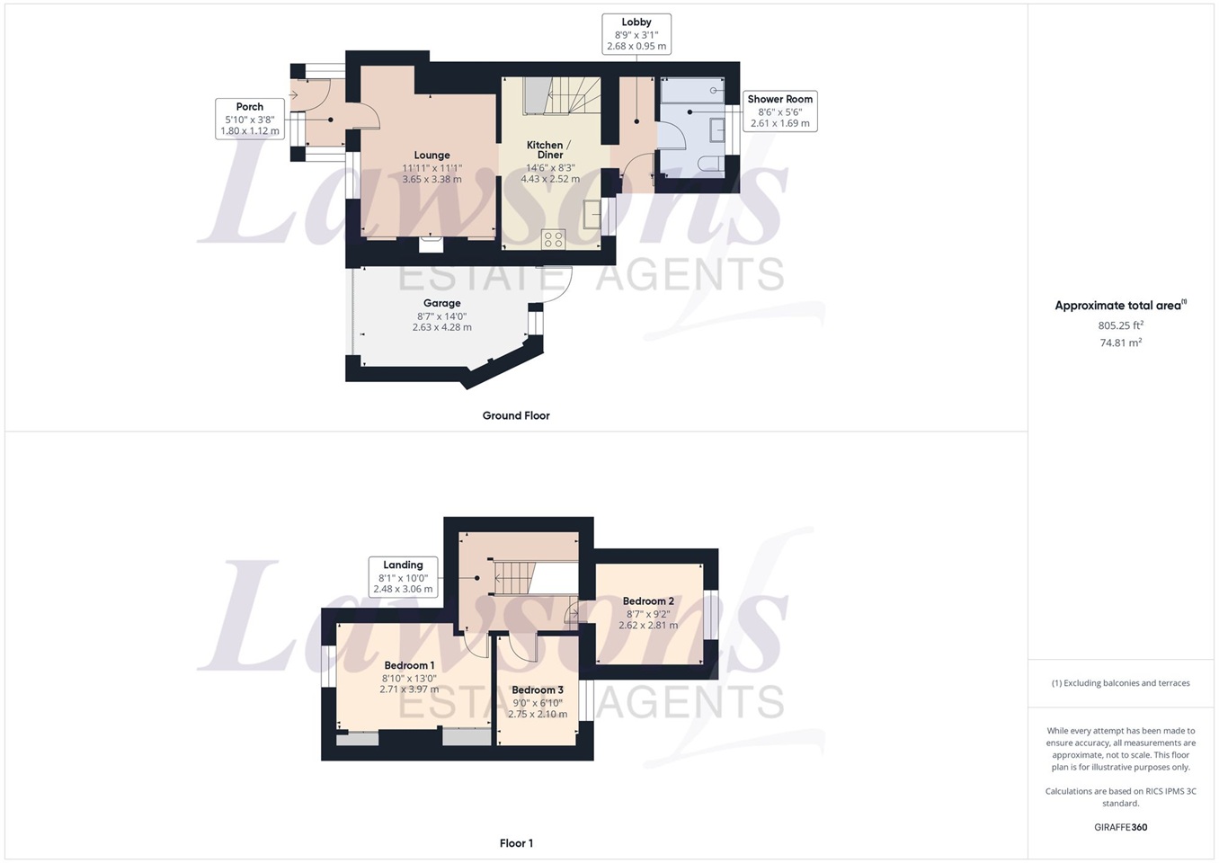 - 3 bedrooms