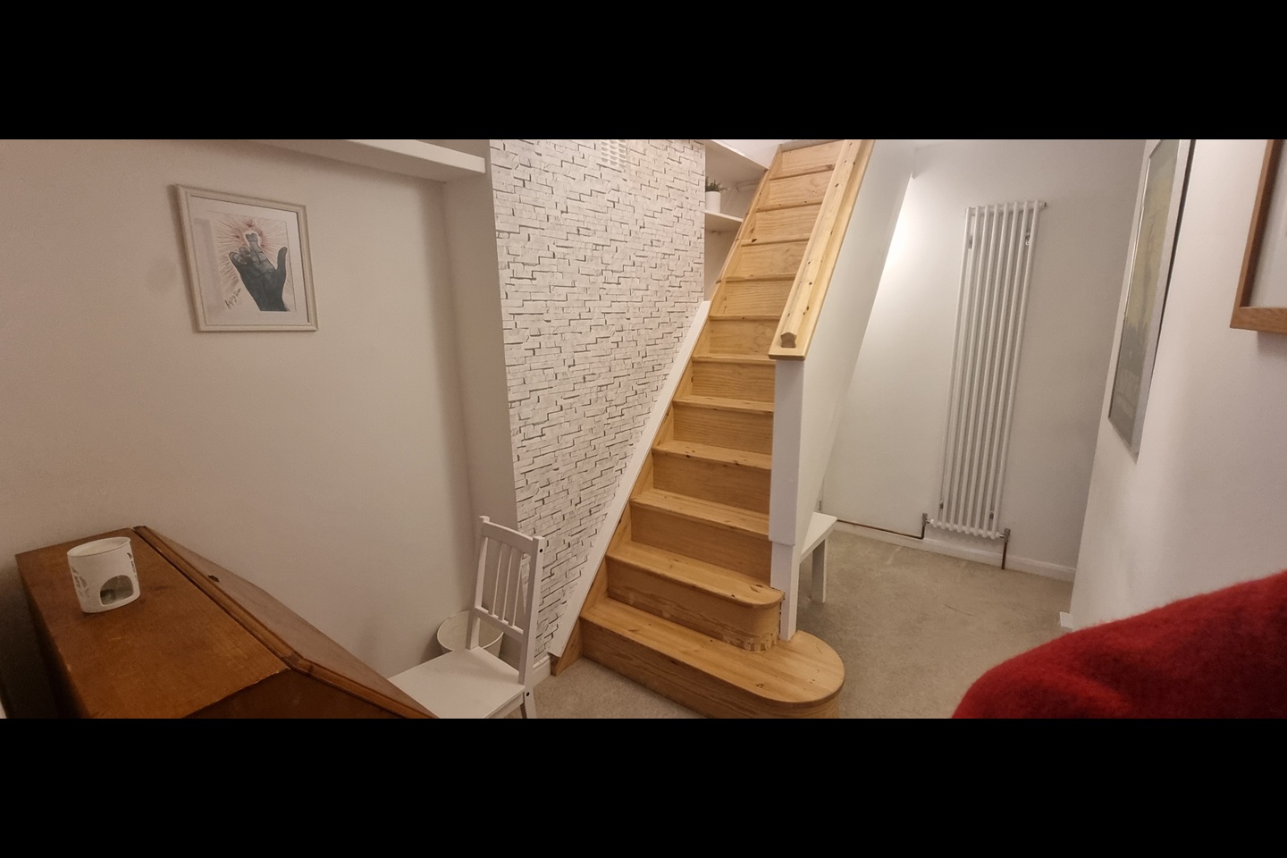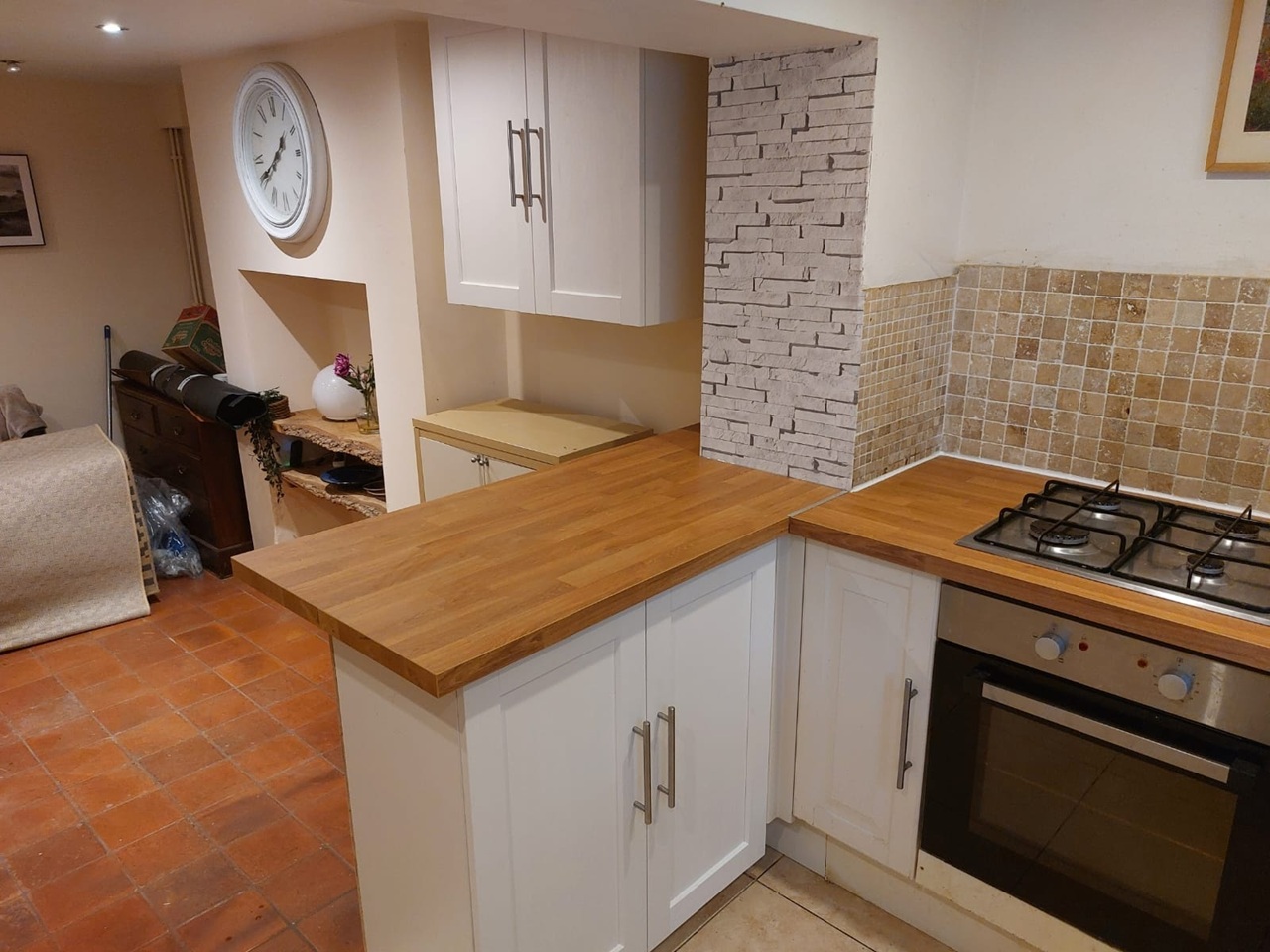 The house is fully furnished, cleaned and well serviced and feels cosy. It has a shared kitchen (gas hob, electric oven) and breakfast bar, good amount of storage, two brand new fridges and a utility area with washing machine and tumble dryer.