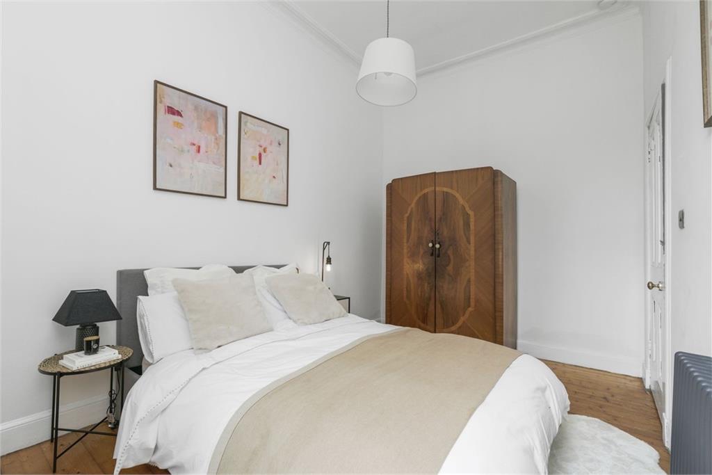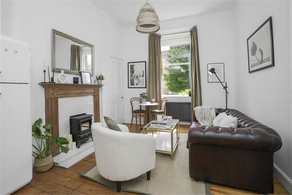 A little gem of a property! This fully furnished flat is a traditional Edinburgh tenement with stripped floorboards and lots of character. The flat consists of a large double bedroom with high ceilings and cornicing; an open plan living room which has been recently decorated with a newly upgraded kitchen including dishwasher, fireplace, dining area and a lovely chill out area complete with a leather chesterfield couch.