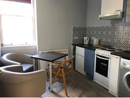 Immaculately clean furnished flat in a listed building with kitchen, large bedroom, bathroom and separate toilet fully tiled.
