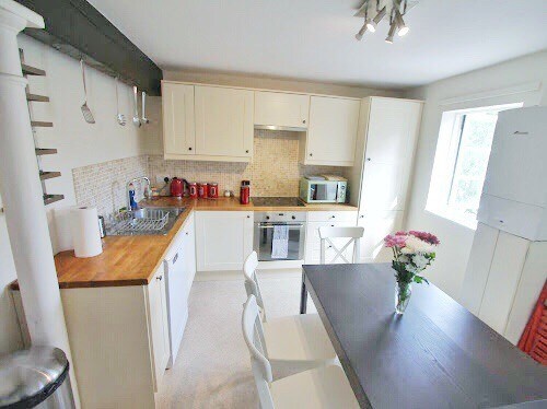 Fully equipped with fridge/freezer, oven, stove, microwave, kettle, toaster, and dishwasher, along with all cookware, crockery, and utensils.