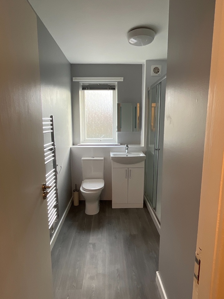 The bathroom is large, with an easy clean shower, storage for all tenants and toothbrush charging point - we've tried to think of everything!