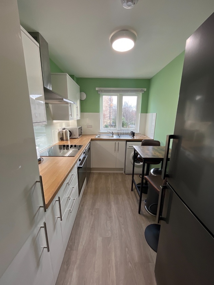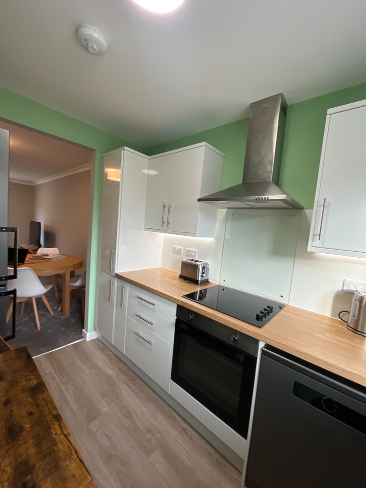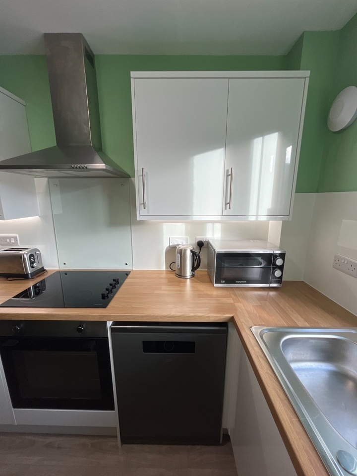 Recently fitted new kitchen with washing machine, large fridge freezer, dishwasher, hob, oven, microwave and lots of cupboard space.