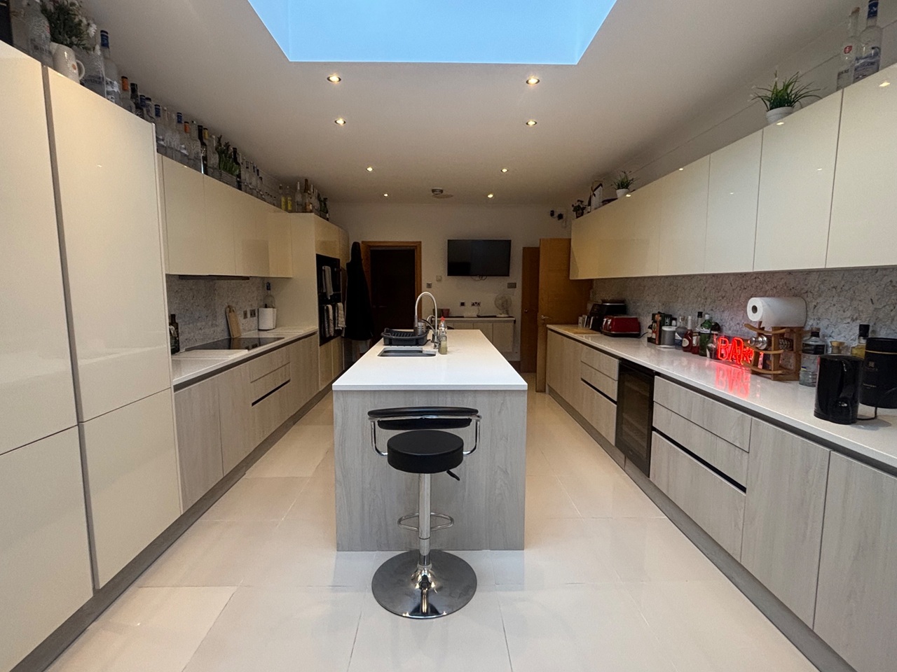 The property boasts a spacious living room, a dedicated cinema room, and a fully kitted-out kitchen. Additional benefits include high-speed internet and wireless speakers throughout the house, creating a comfortable and modern living environment.