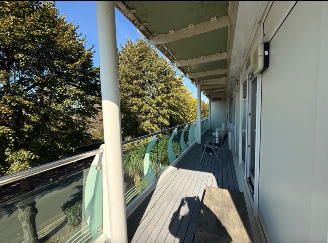 Double balcony wrapping around apartment.