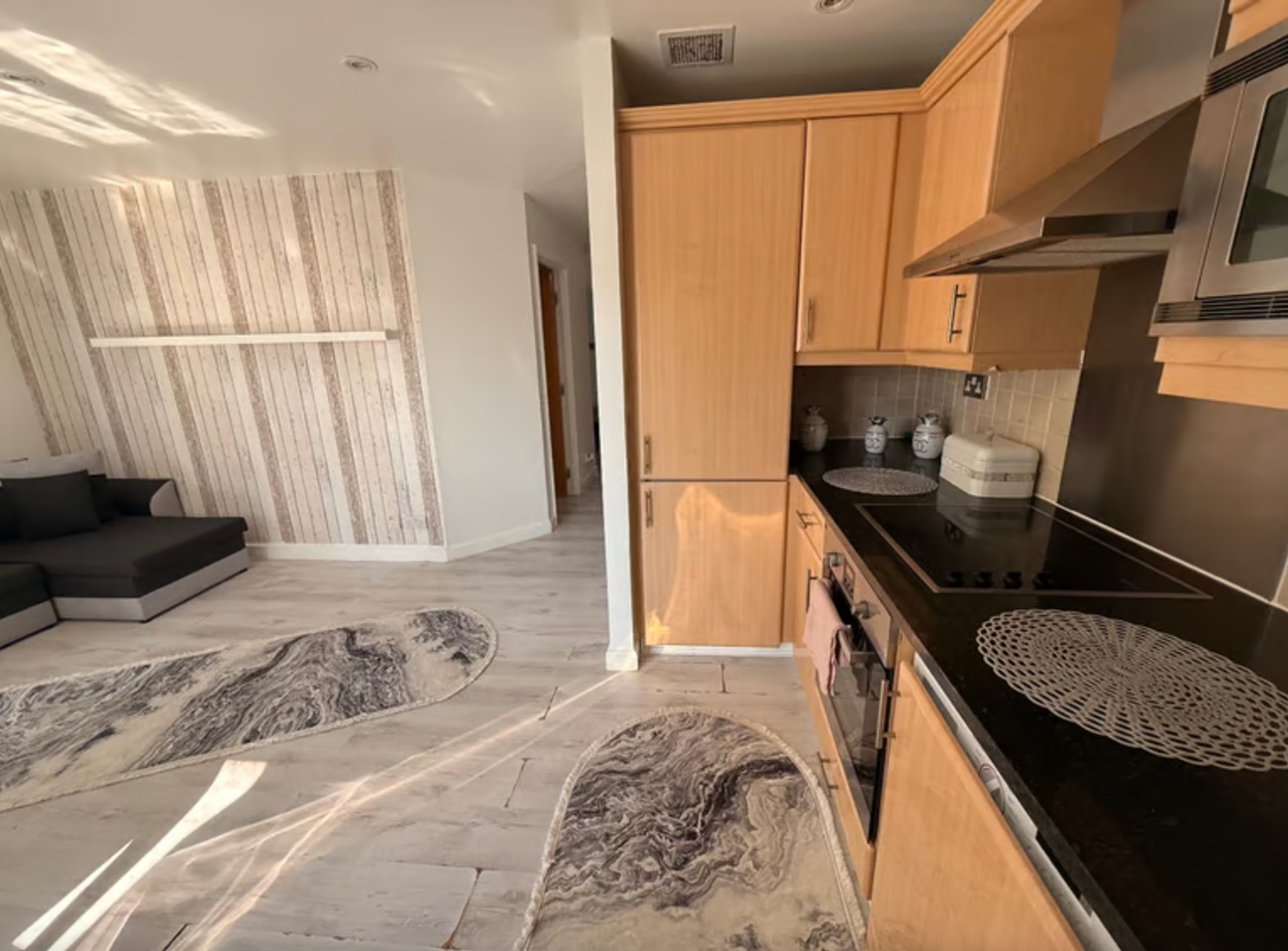Open plan kitchen and living room.
