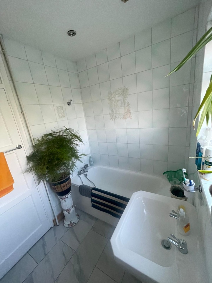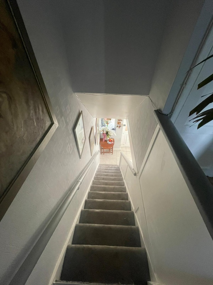 There's a downstairs shower bathroom and another bathroom upstairs.