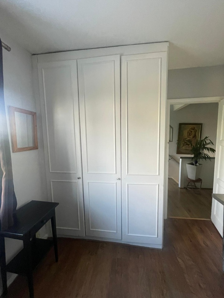 Big room, with large cupboards, big metal side table, King size bed, luxury matress.