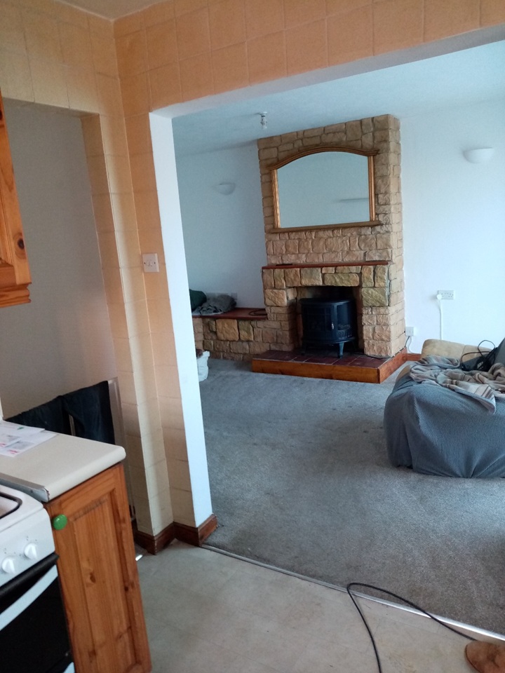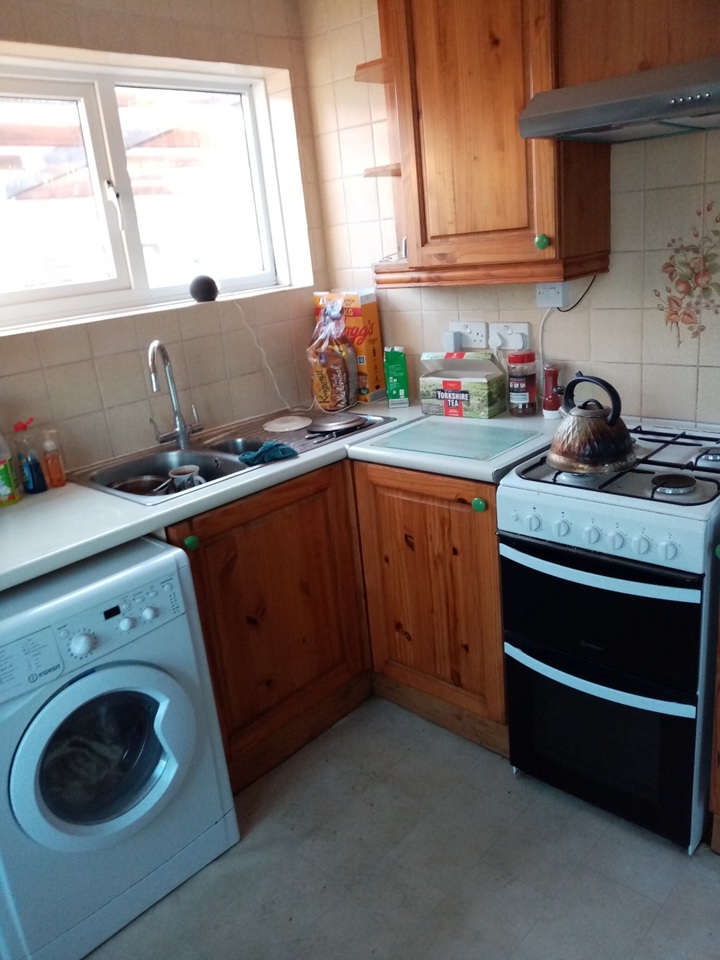 The kitchen is complete with worktops , cupboards , a gas oven ( about 3 years old) , a small fridge, washing machine and the combi boiler.