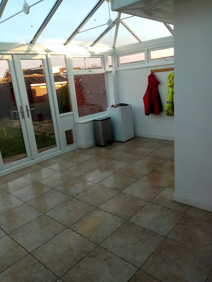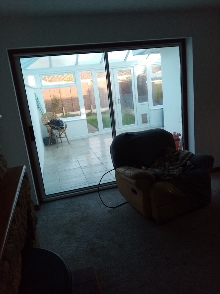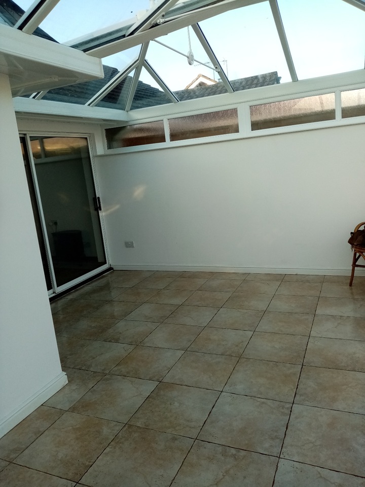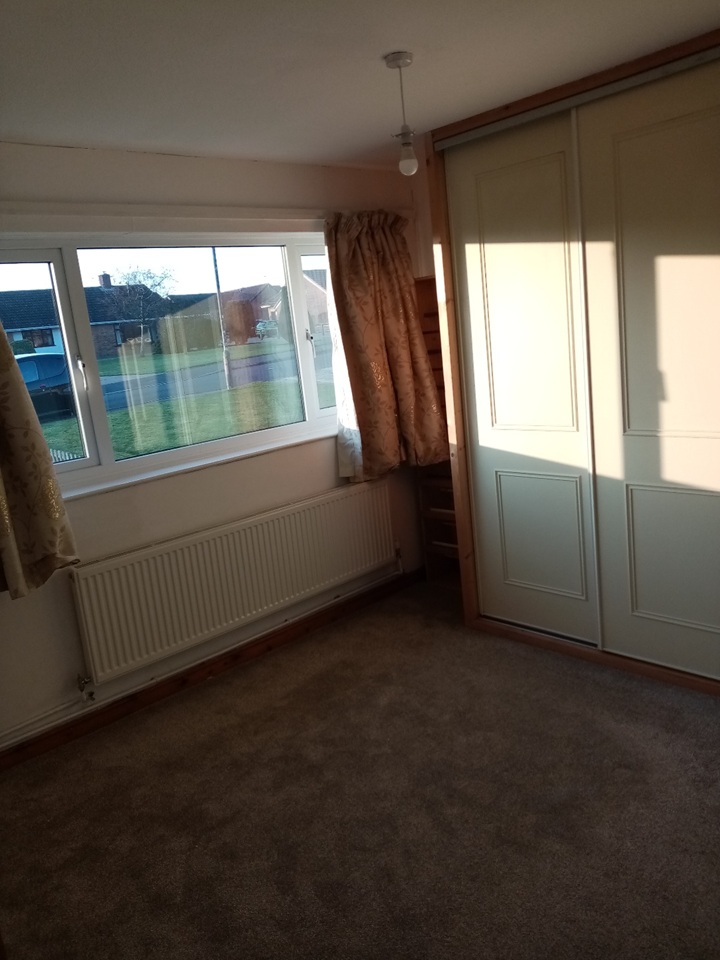 This is a cosy 2 bedroom semi detached bungalow with off road parking, gas central heating, a huge heated conservatory, and an amazing bathroom shower, all heated by a condensing Combi boiler about 3 years old ( no bath ). Fully carpeted through out ( except kitchen and bathroom ). There is a double bed in each of the bedrooms ( master bedroom has a fitted wardrobe and dedicated shoe stand ), the second bedroom has dedicated book shelves , and the sitting room has a sofa and 2 armchairs.