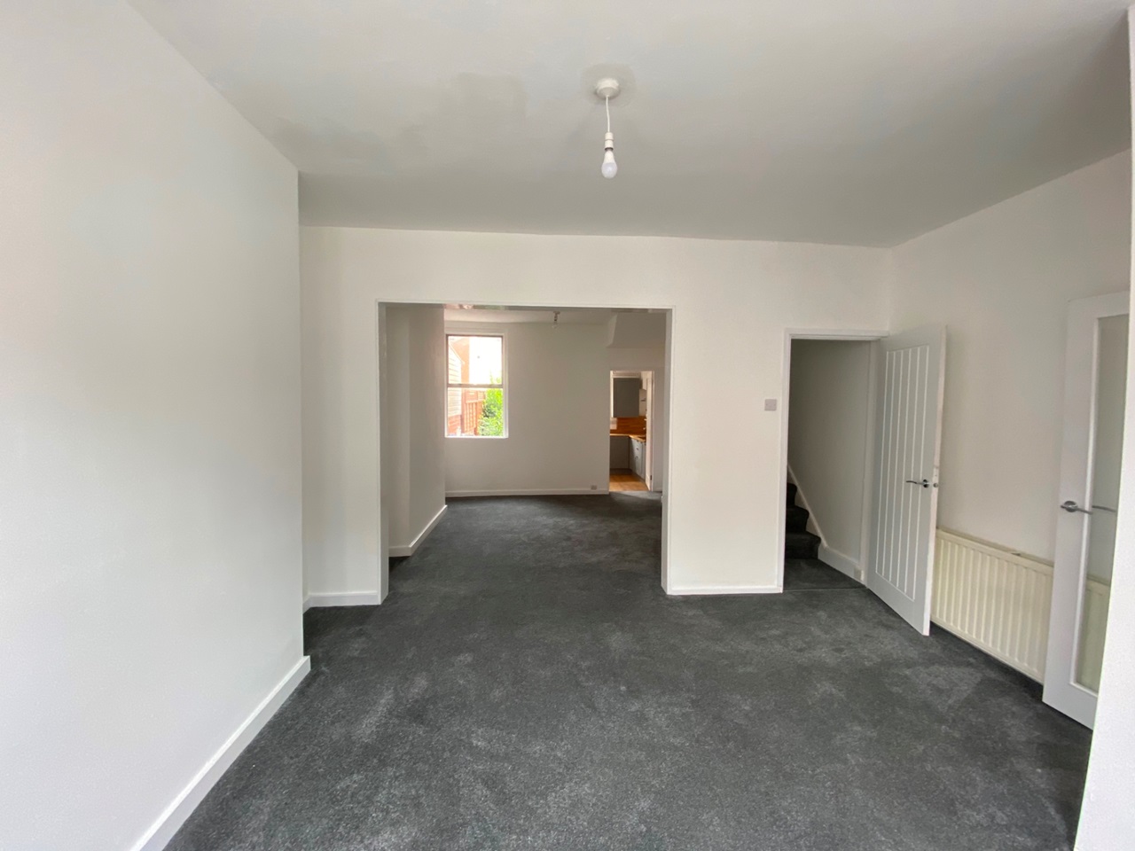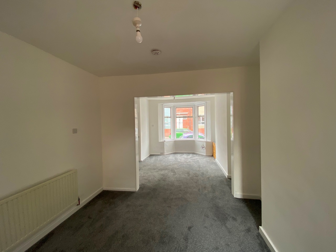 Living Room4.29m x 2.13m Double glazed bay window, TV point, Radiator, flat screen tv, sofa and coffee table. Archway leading to