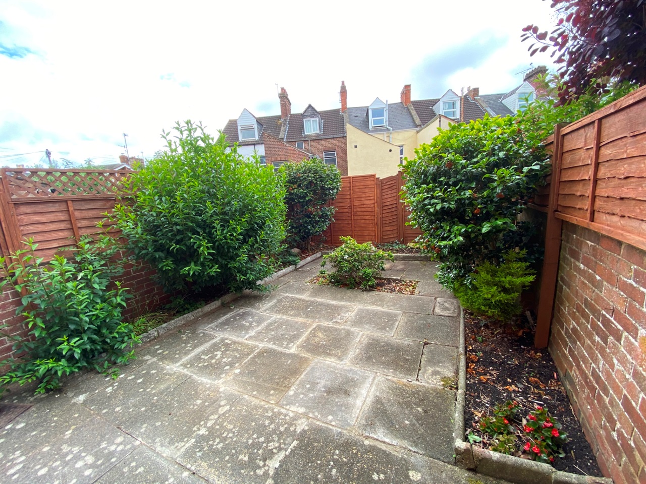 Rear CourtyardSpacious rear courtyard laid to patio with shrub and flower boarder