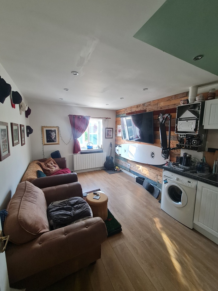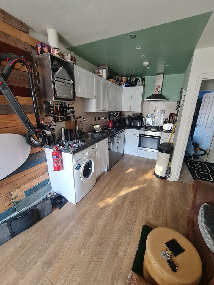 Fully furnished (hence deposit put into secure signed account). Large 65" flat screen TV, washing machine, fridge and freezer, double beds in both bedrooms, sofa and armchair, robot hoover