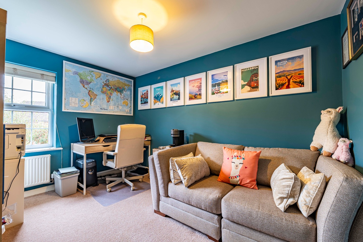 The first floor offers four generously proportioned bedrooms, providing flexible accommodation for growing families or those working from home. The luxurious main bedroom benefits from a sleek en-suite shower room with a walk-in shower, while the contemporary family bathroom is fitted with a walk in shower and a separate bath, serving the remaining bedrooms.
