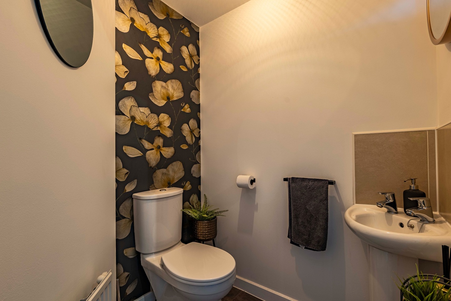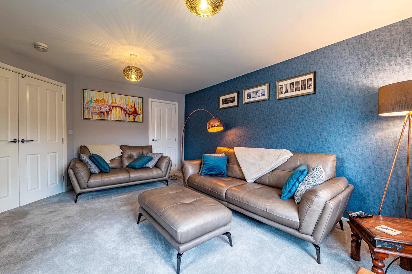 This light and spacious home welcomes you into an elegant entrance hallway, setting the tone for the quality throughout. To the front of the property is a stylish and comfortable living room, ideal for relaxing with family or entertaining guests. The hallway also provides access to a convenient downstairs WC/cloakroom.