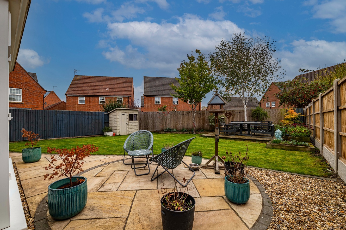 Externally, the property enjoys a driveway providing off-road parking, a single garage, and a well-maintained, good-sized rear garden. The garden can be accessed via a side gate from the driveway, the utility room, or directly from the kitchen-diner, making it ideal for family life, entertaining and children’s play.