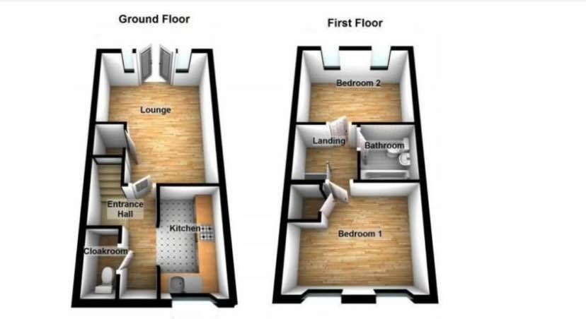 Two bedroom property with private parking space and enclosed rear garden. Property offers two large master bedrooms, a spacious living room, kitchen, bathroom and a downstairs WC. There is an allocated parking space in front of the house's enclosed south facing rear garden.