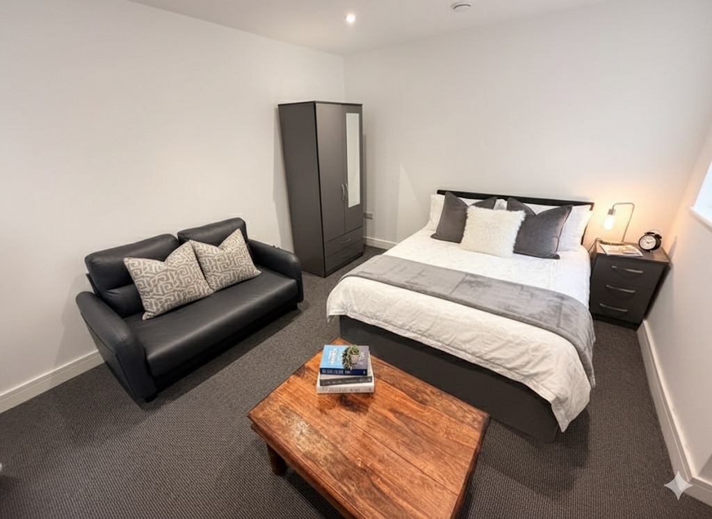 ✅ Fully furnished – small double bed, wardrobe, chest of drawers, bedside unit & lamps