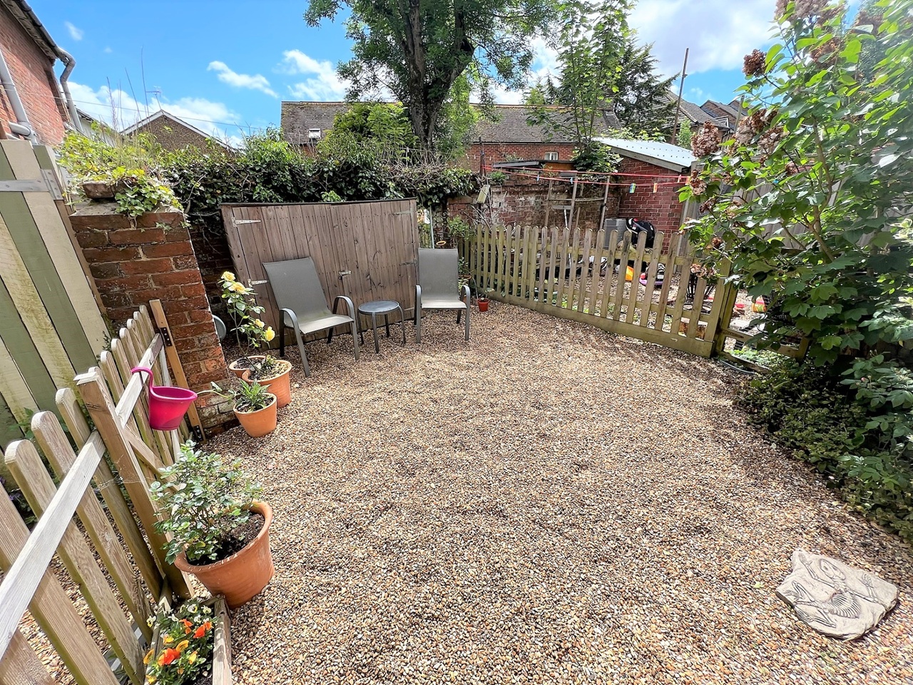 The house is set back from the main road with a lovely communal front garden and a private rear garden laid to gravel for easy maintenance. There is a garden shed which will be available to the tenant.
