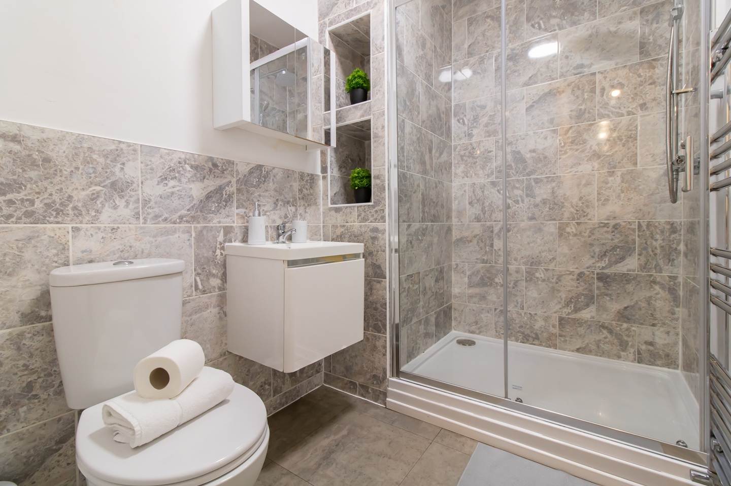 🛁 𝐌𝐨𝐝𝐞𝐫𝐧 𝐁𝐚𝐭𝐡𝐫𝐨𝐨𝐦: Enjoy a fresh shower or bath.