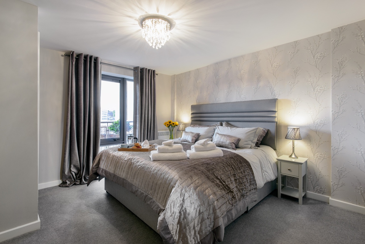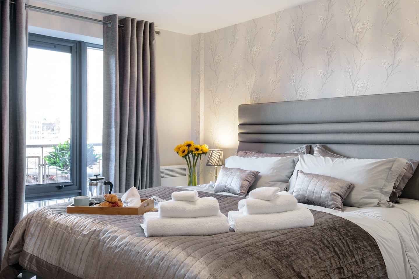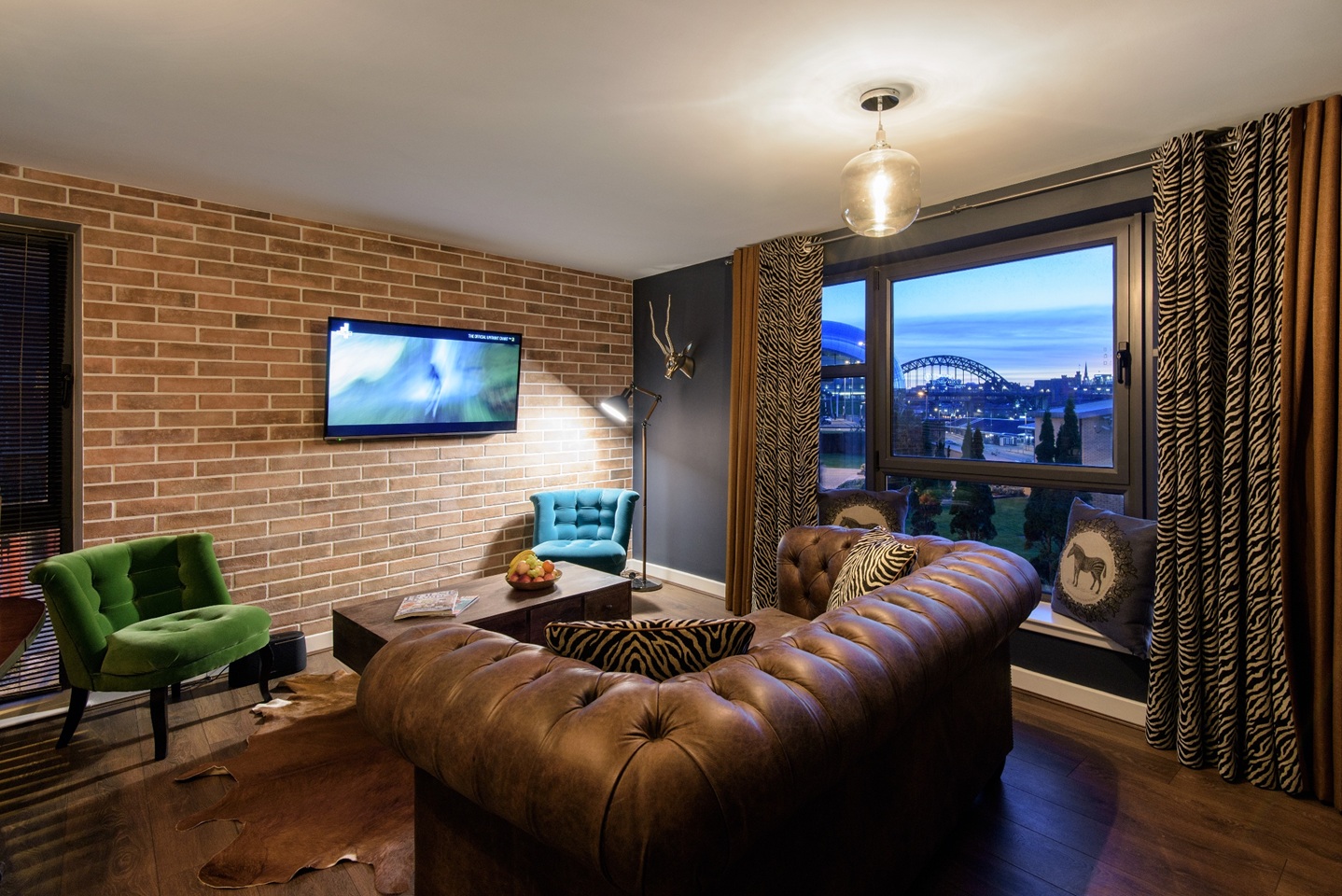 The modern furnished apartment comprises entrance hall leading to the spacious lounge with furnishings including a leather sofa and dining table with 6 chairs. This room offers fabulous views of the River Tyne and bridges and access to a balcony with the same view. The kitchen is situated just off the hall, which is smartly fitted with wooden units, washing machine, dishwasher, oven/hob/extractor and benefits from a freestanding fridge/freezer.