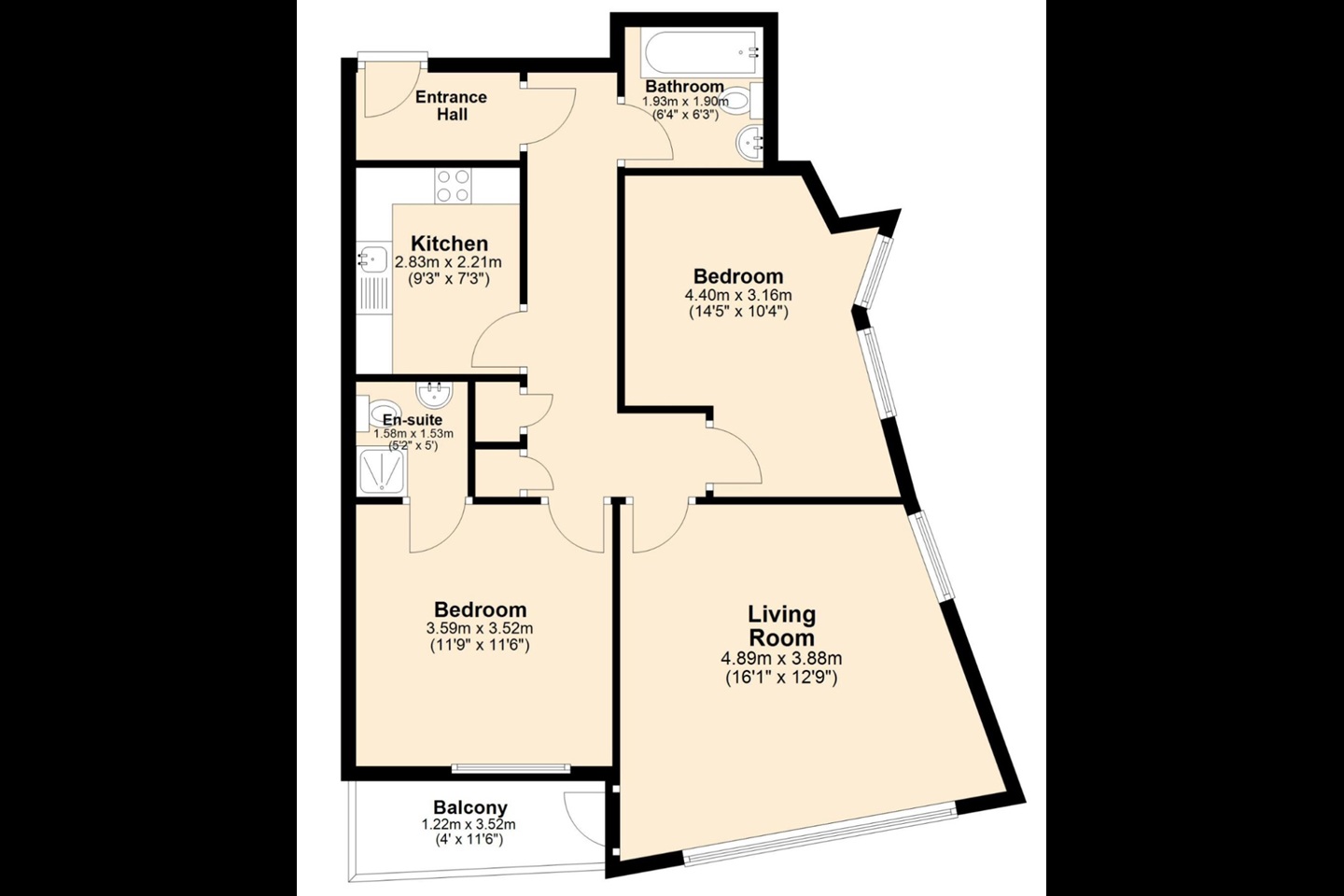 - 2 bedrooms
