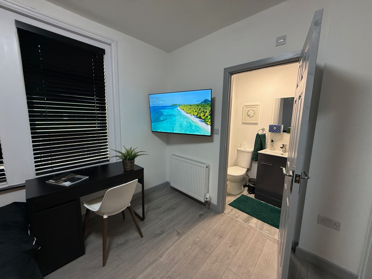 The room included a full set of brand-new furniture, 50" smart TV, a new memory foam mattress and a fridge freezer.