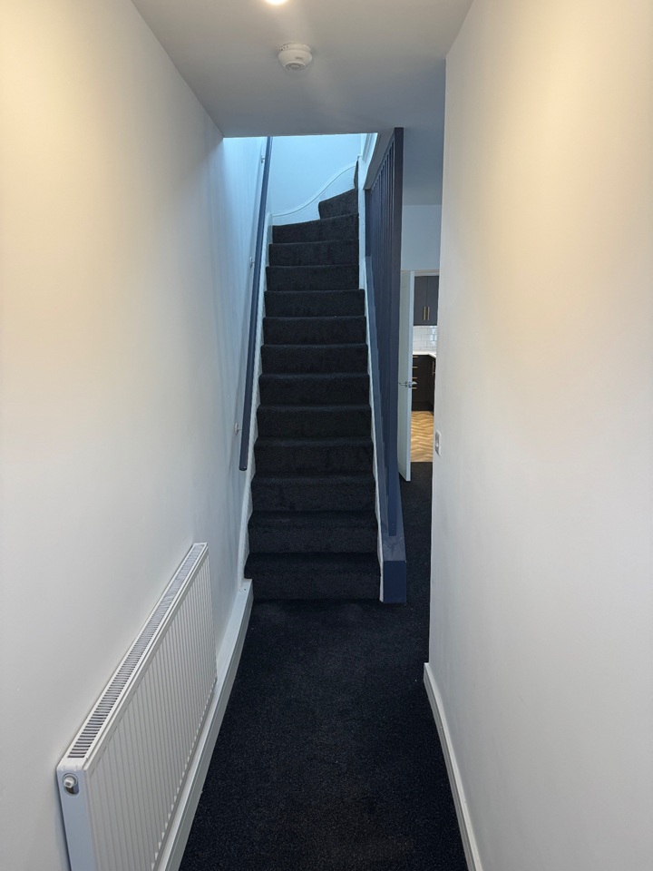 This spacious property features a bright living area, a modern fitted kitchen, and a stylish bathroom with separate WC. Upstairs offers three well-proportioned bedrooms, ideal for families or professionals.