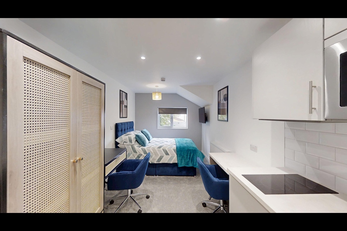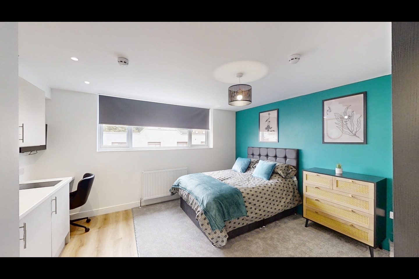 - Brand-new beds, mattresses, wardrobes, desk, chair and ample storage