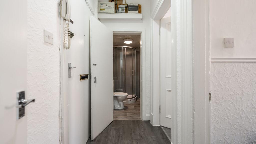 Living Room with Entrance Hall, 1 Double Bedroom with Built-in Overhead Storage and a Shower Room including Electric Shower, Wash Basin and Toilet. The Flat is heated by Eco-Friendly Electric Radiators with an Electric Heated Water Cylinder with Modern Double Glazed Windows Throughout.