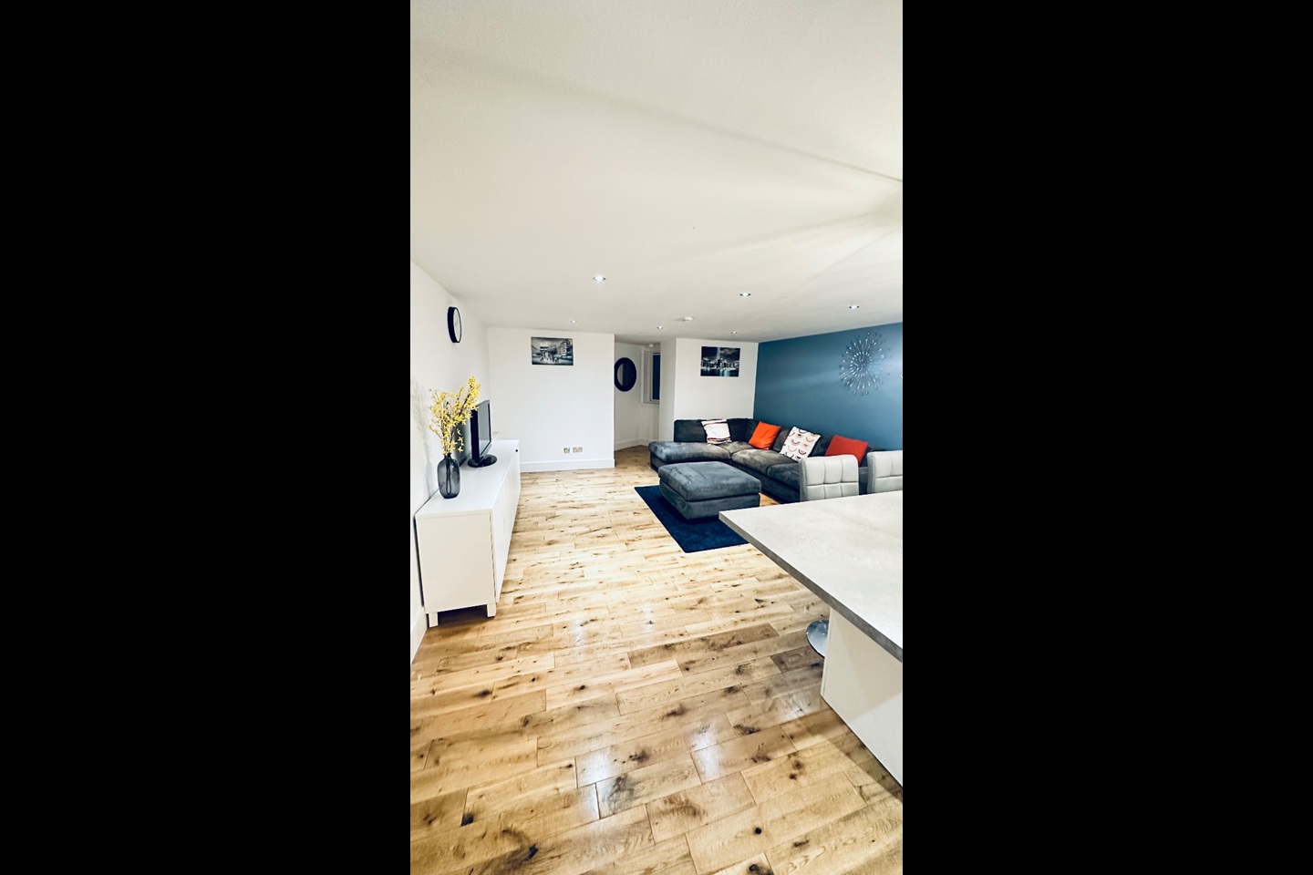 Spacious Open-Plan Layout: The large kitchen/diner/living area provides a versatile space for relaxation and entertaining. Wooden flooring extends through the hall, kitchen, and living room.