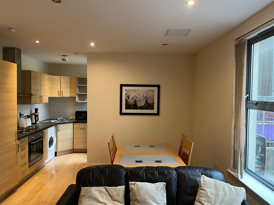 This first-floor property comprises of an entrance hallway with storage leading to a spacious lounge with a dining area and an open-plan modern kitchen with all appliances and a family bathroom. There are two double bedrooms.